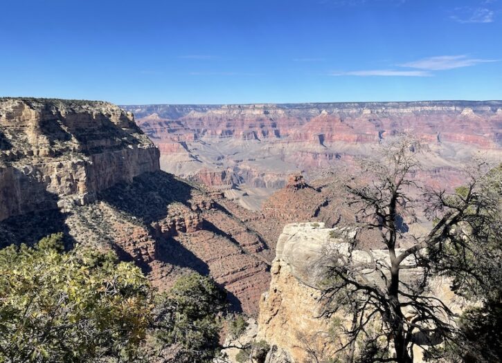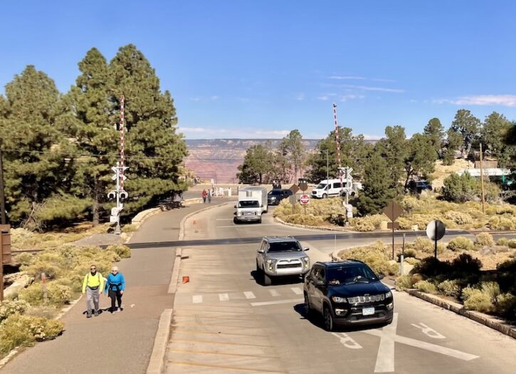 As we slowed and made our way toward the canyon village, we passed through a crossing gate. In the distance, we got our first glimpse of the Grand Canyon. This was my first time at the Canyon. I was told by many who had been there, that it was so hard to describe the magnitude of the Grand Canyon. I am now in agreement with that statement. Words seem to be inadequate when trying to describe seeing the Grand Canyon for the first time. I was in awe. The train ride ends at the Grand Canyon Village. You could tour the area by foot to see the main part of the canyon. We chose to take a short bus ride to see as much as time would allow. This proved to be a worthwhile addition to our train trip. The tour was about ninety minutes, which left us plenty of time to explore the heart of the village. We snapped the obligatory photos and made our way back to the train after taking it all in.