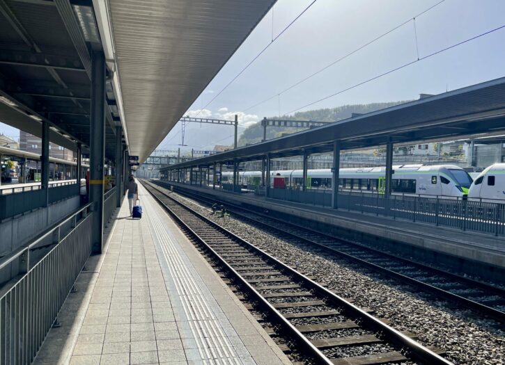 We travelled through Varzo and Domodosolo without stopping. Our first overnight stay was in Italy was Milan. The Milano Centrale station was bustling with what appeared to be a mix of tourist and business traffic. The building itself is a marvel to look at with the domed glass framework ceiling allowing light to highlight the bright red sleek trains that were coming and going. While in Milan we visited the Duomo di Milano and the Sforzesco Castle. The city of Milan is a busy metropolitan area, but history of the region is evident in the architecture and art that is spread throughout the city.